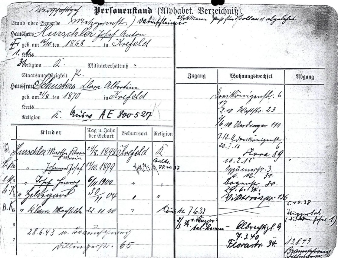 Pendenz 135 Martha Hurschler Zivile Kriegstote im zweiten Weltkrieg in Krefeld |