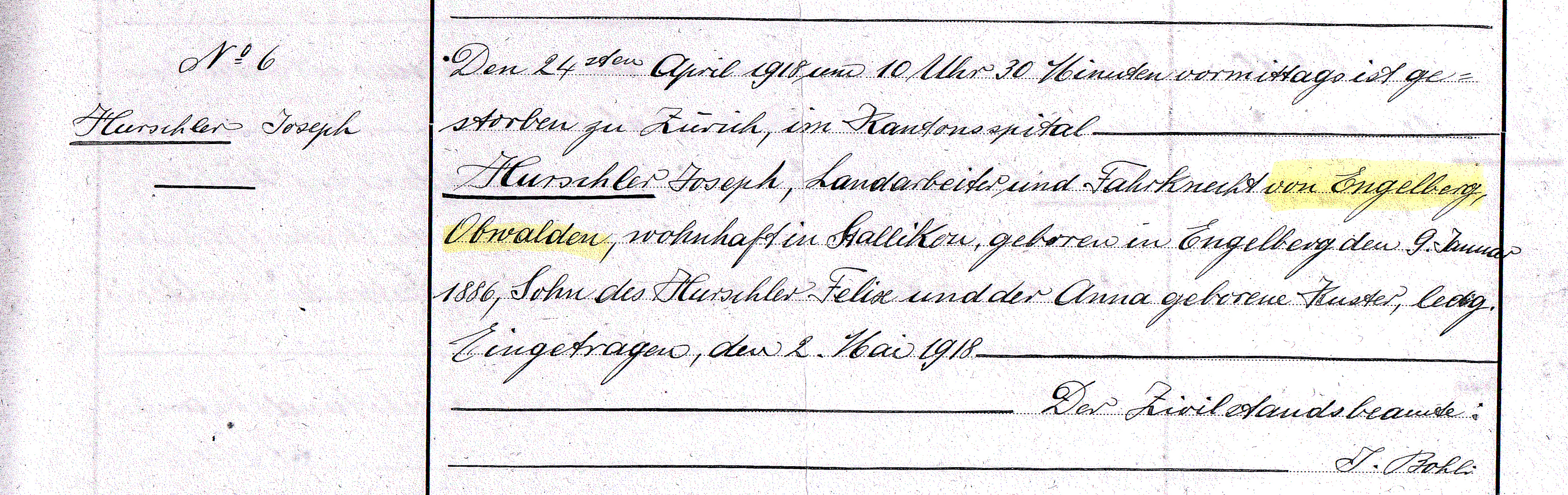 Ich suche Angaben zu einem Joseph Eugen Hurschler Totengräber