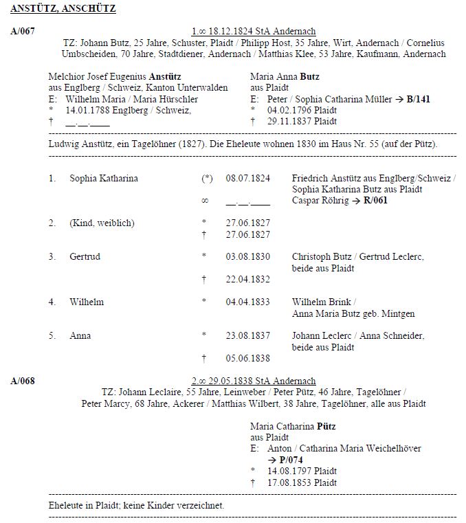 Pendenz 41 Melchior Josef Eugenius Anstütz Sohn des Wilhelm Maria Astütz und Maria Hurschler |