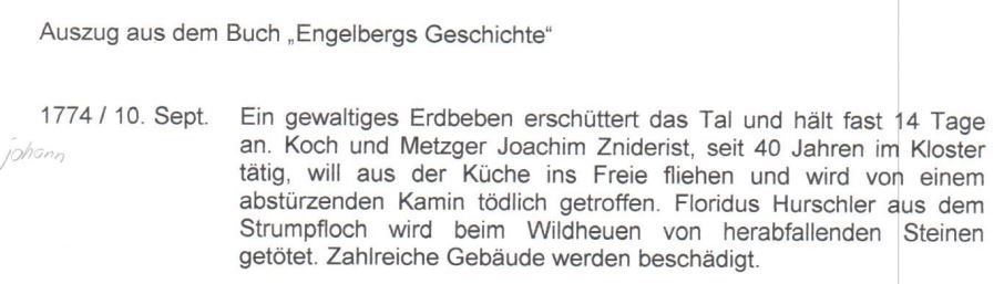 Pendenz 155 Auszug aus Engelbergs Geschichte |