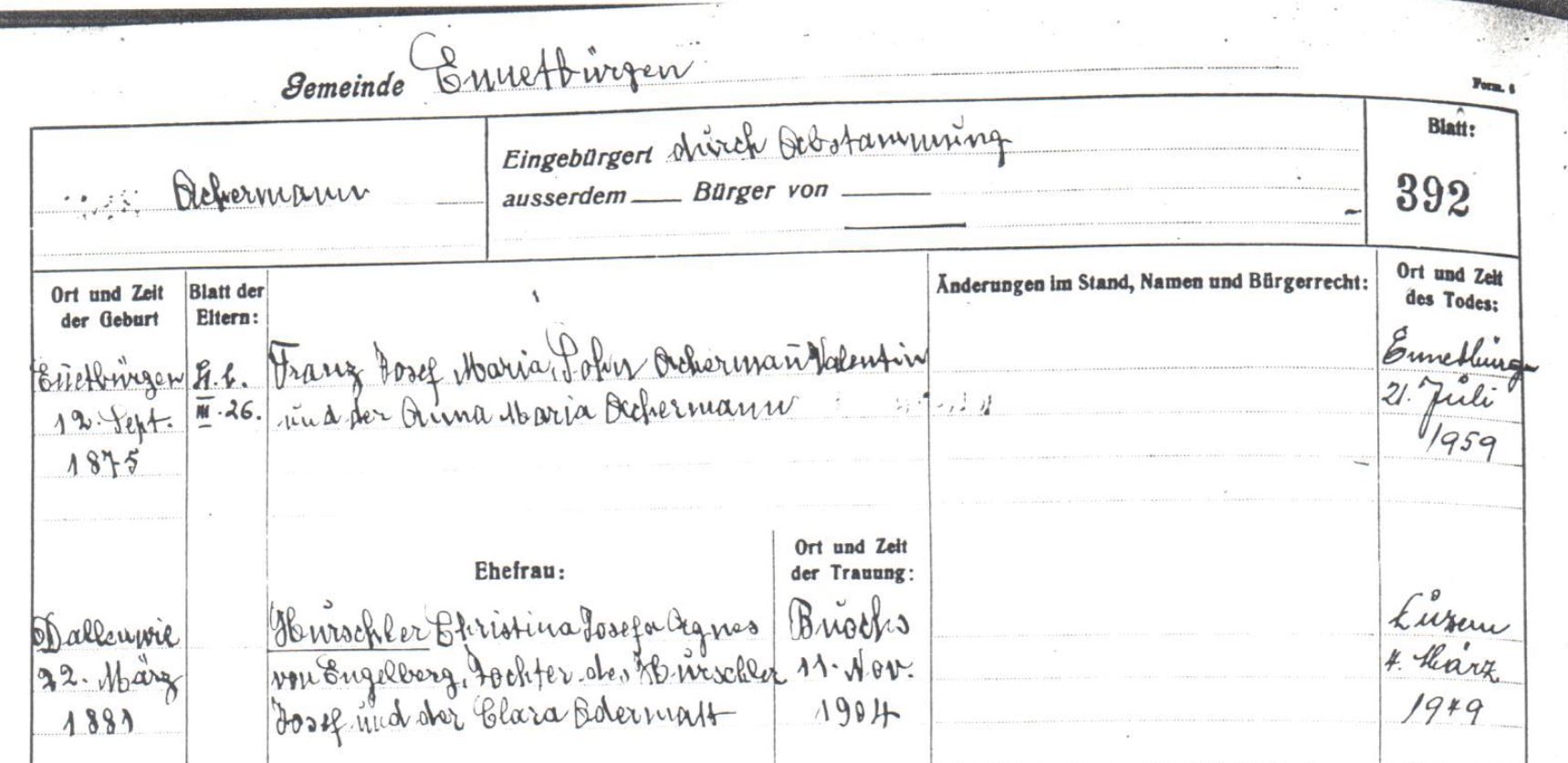 von der gesuchten Person habe ich das Familienstammbuch erhalten.