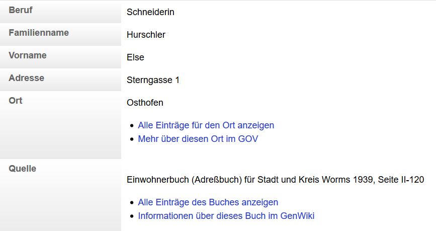 Zur gesuchten Person habe ich nur diesen Hinweis gefunden. Sie lebte in Deutschland in der Ortschaft Osthofen und war Schneiderin
