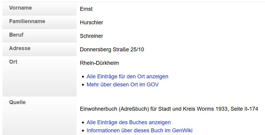 Zur genannten Person habe ich nur die folgenden Angaben:
