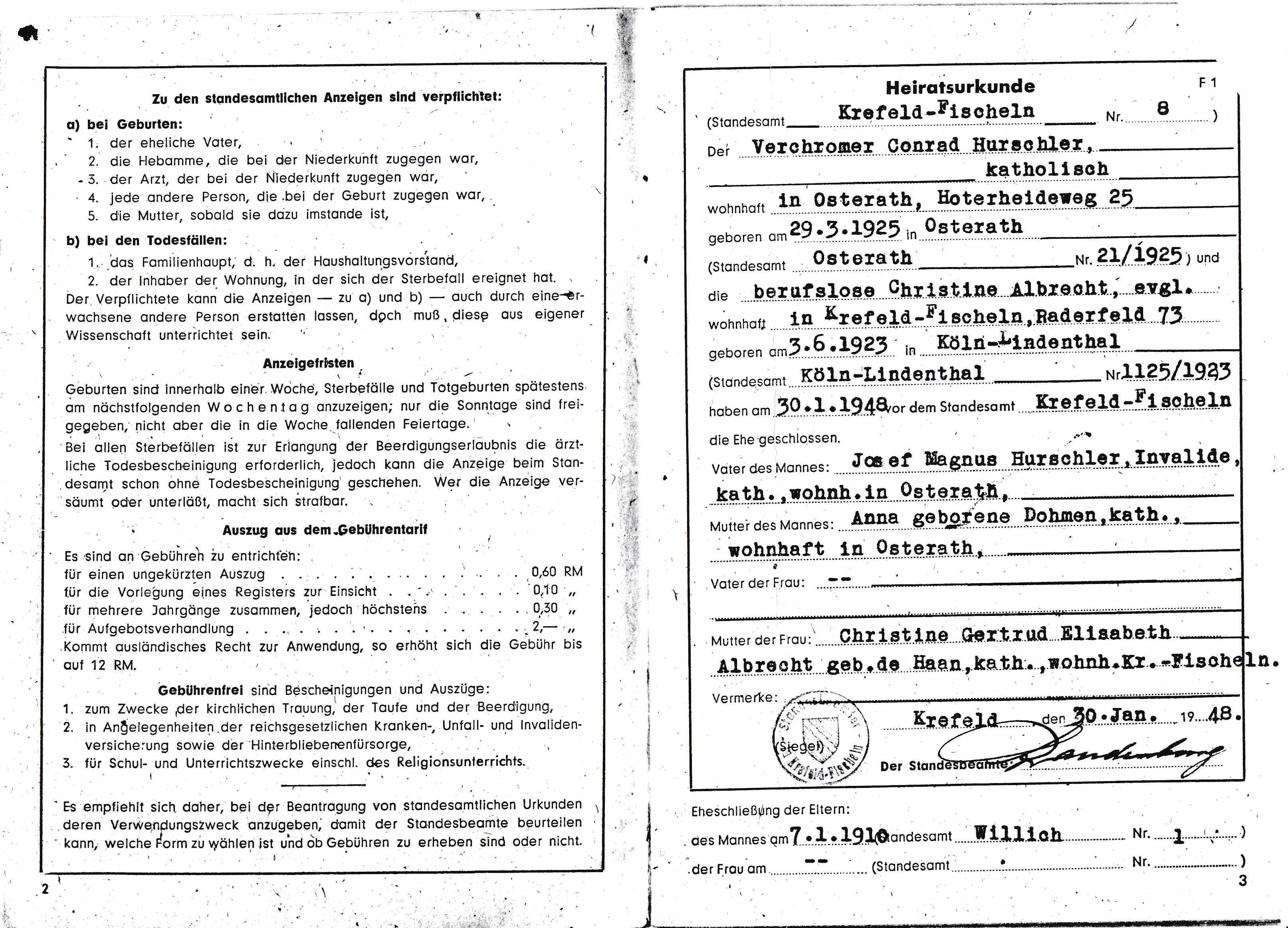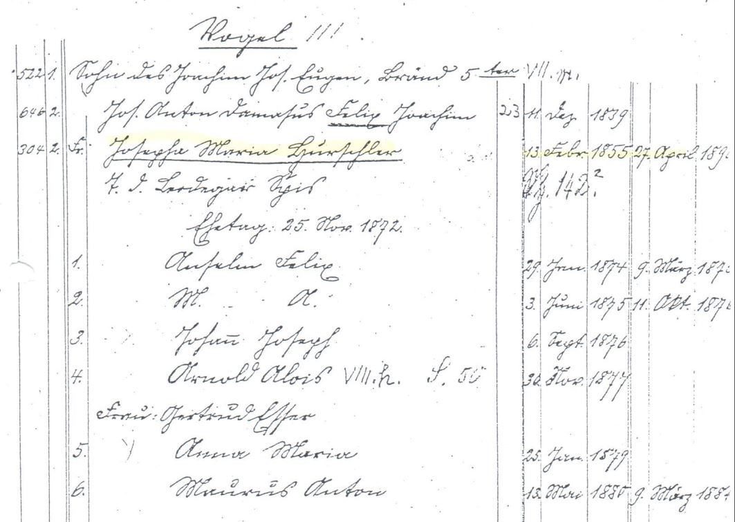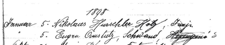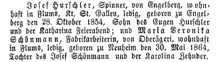 Die Eltern des Joseph Hurschler sind Eugen Hurschler und Cath. Feierabend. Die genannten Personen Eugen Hurschler und Cath. Feierabend sind noch nicht bekannt. Vieleicht kann jemand weiterhelfen |