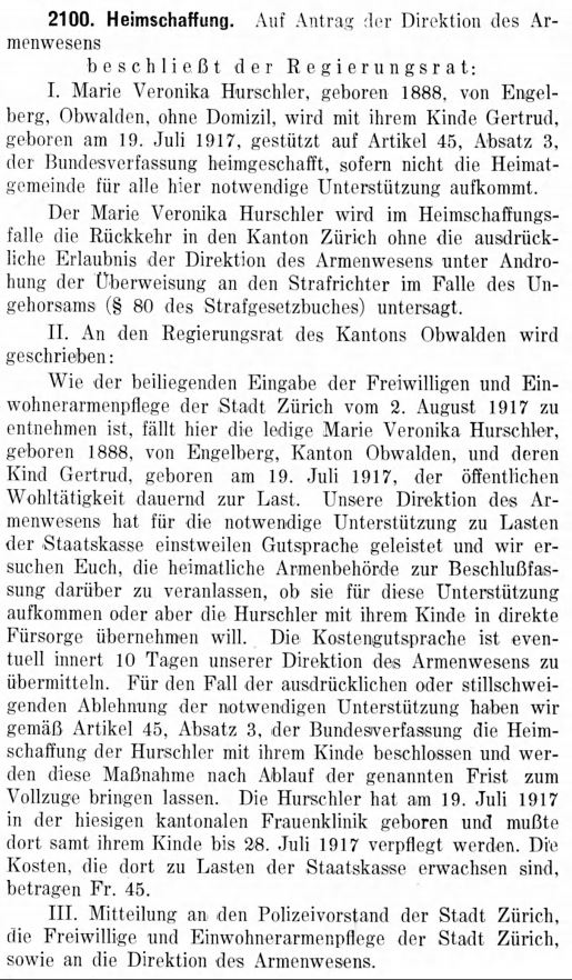 Pendenz 130 Marie Veronika Hurschler geboren 1888 |