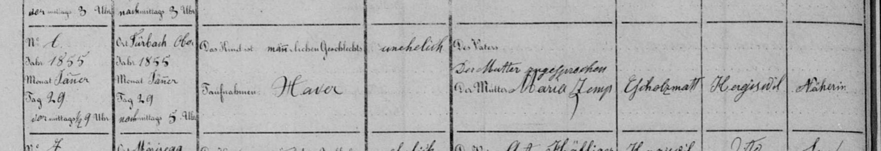 Den Geburtsbucheintrag fand ich in der Gemeinde Hergiswil